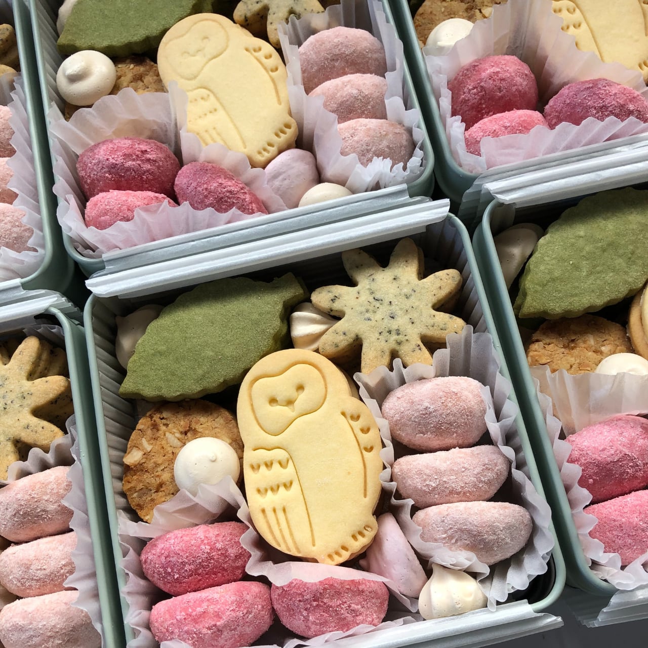 ●原材料・・・小麦粉(北海道産)、バター、黒糖、てんさい含蜜糖、アーモンドプードル、アーモンド、胡桃、カシューナッツ、卵、紅茶(アールグレイ)、抹茶、バニラオイル、ストロベリーパウダー、クランベリーパウダー、(一部に小麦、卵、胡桃、乳成分を含む)